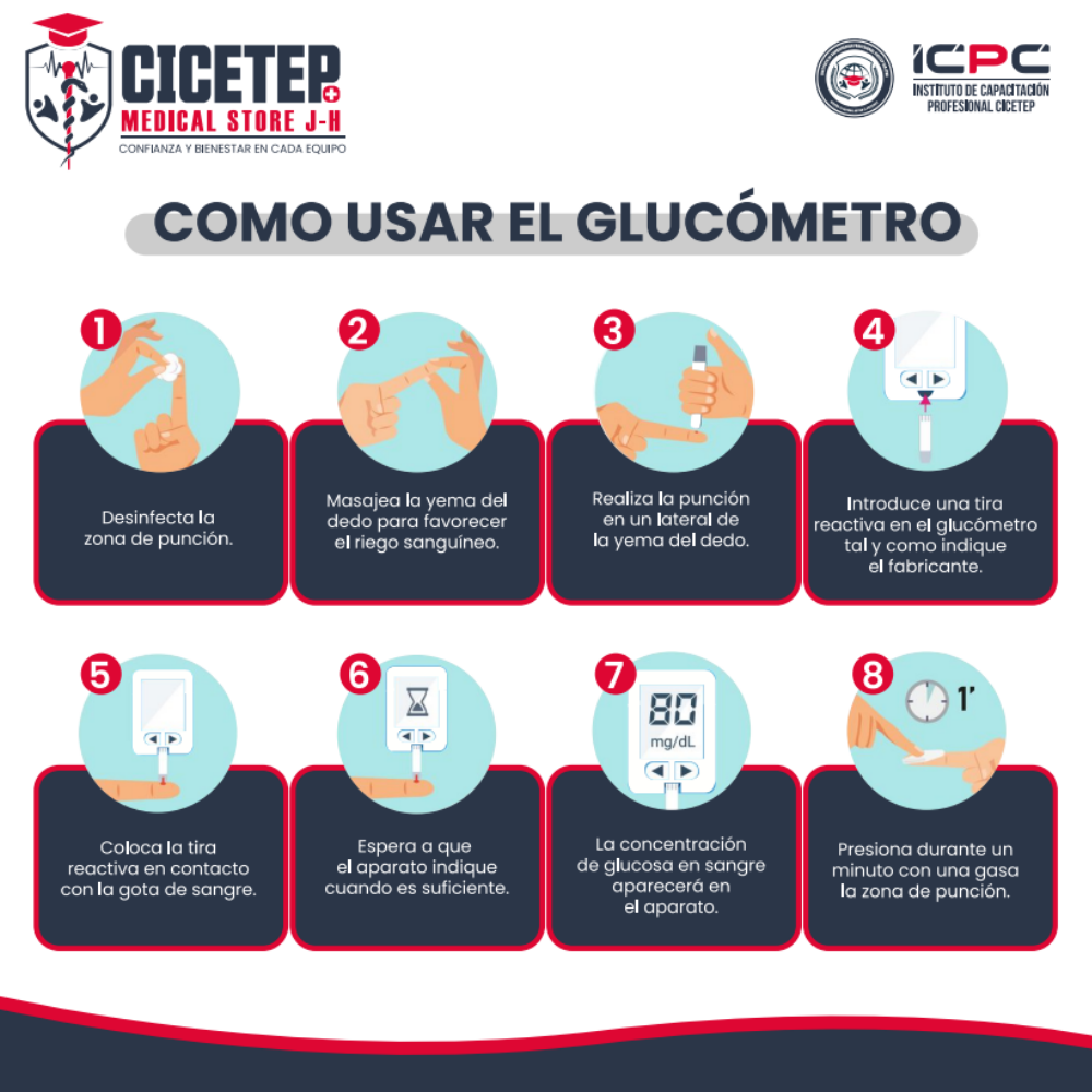 El glucómetro digital de CICETEP Medical Store es ideal para el control diario de la glucosa en sangre. Permite medición inmediata, previene emergencias y apoya el seguimiento de la diabetes. Fácil de usar, portátil y con respaldo institucional.