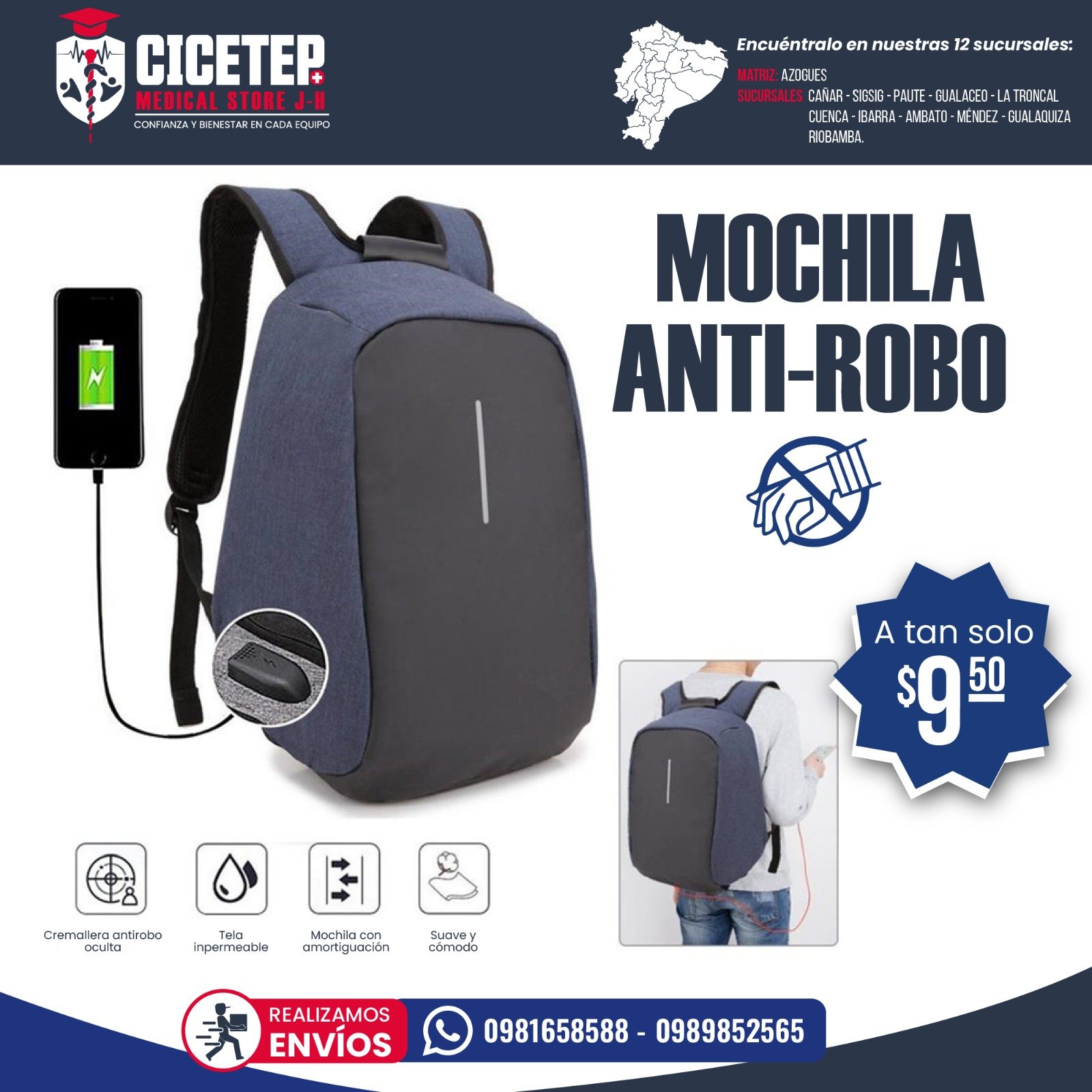 Mochila anti-robo con cremallera oculta, puerto USB, material impermeable y espacio inteligente. Seguridad total para tus pertenencias.