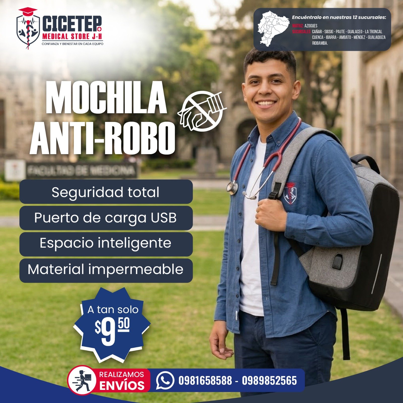 Mochila anti-robo con cremallera antirobo oculta para máxima seguridad. Puerto de carga USB integrado, material impermeable, espacio inteligente y amortiguación. Suave, cómoda y resistente. Ideal para estudiantes, profesionales y viajeros.