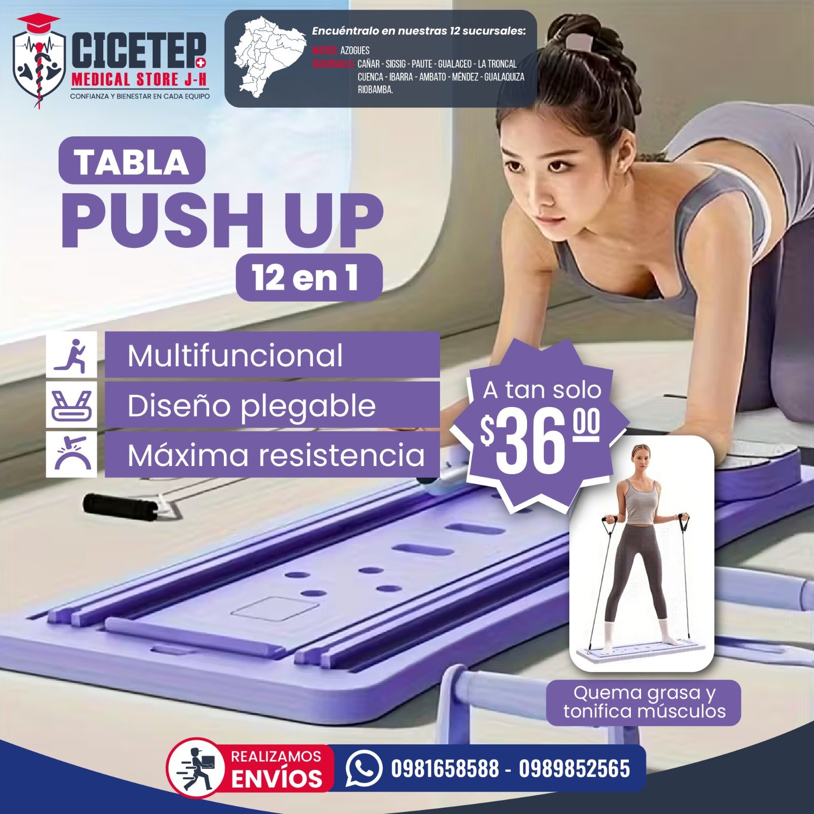 Tabla push up multifuncional 12 en 1 para entrenar pecho, espalda, hombros y tríceps en un solo equipo. Diseño plegable de máxima resistencia. Quema grasa y tonifica músculos desde casa de forma efectiva y sin necesidad de gimnasio.